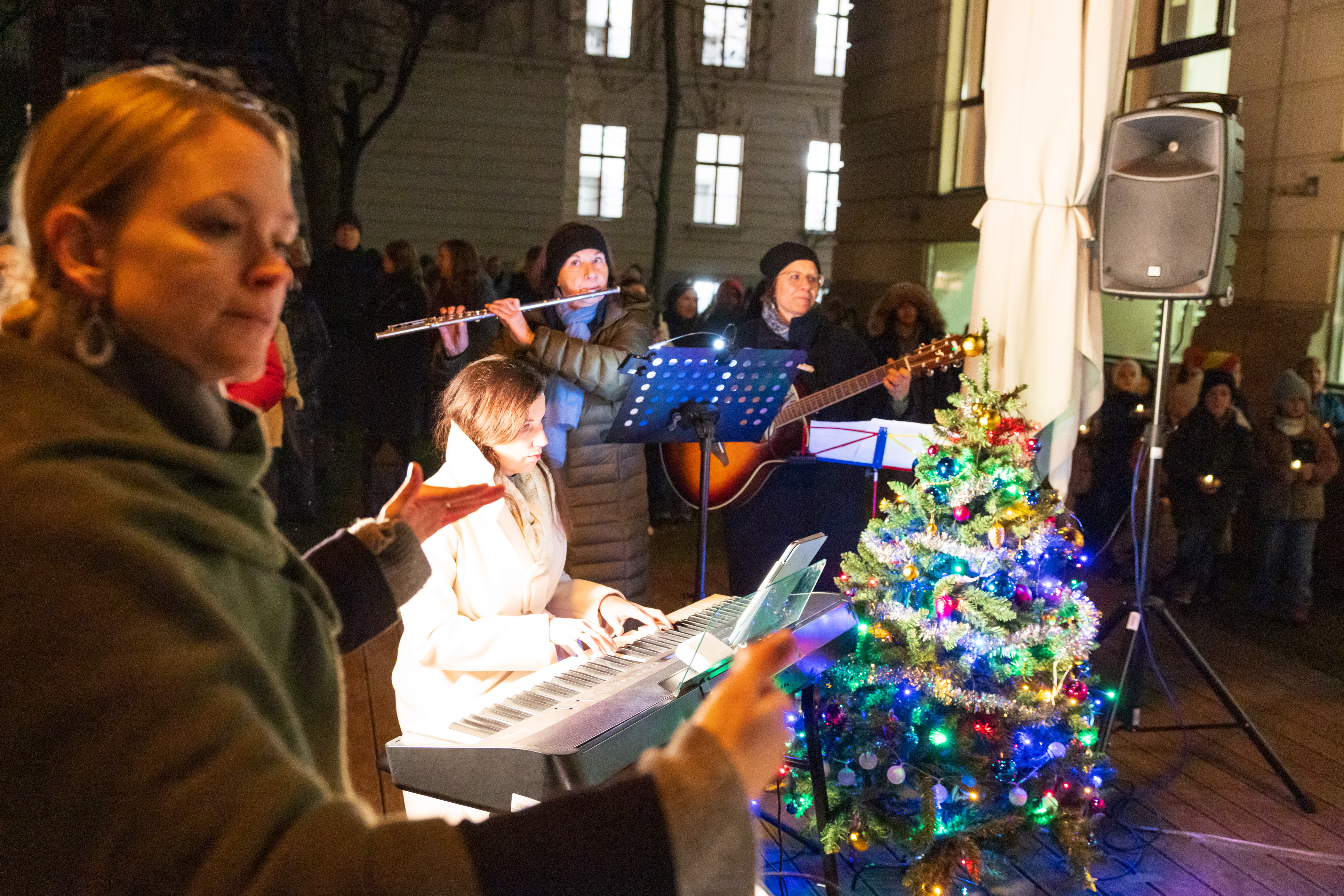 Musikalisch wurde die Aufführung von den beiden Chören sowie der Lehrer*innen-Band begleitet, die mit Querflöte, Klavier und Gitarre für festliche Klänge sorgte. Durch die gelungene Zusammenarbeit aller Beteiligten entstand ein harmonisches Gesamtbild, das das Publikum begeisterte und die Werte von Gemeinschaft und Hilfsbereitschaft eindrucksvoll in den Mittelpunkt stellte.