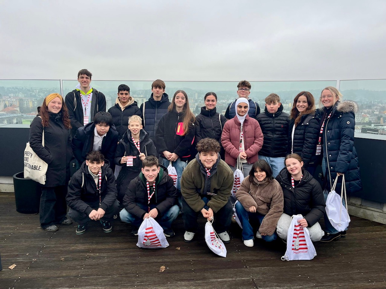 Zum Abschluss durfte die Exkursionsgruppe noch den Ausblick über Graz vom 14. Stock des Styria Media Centers genießen.